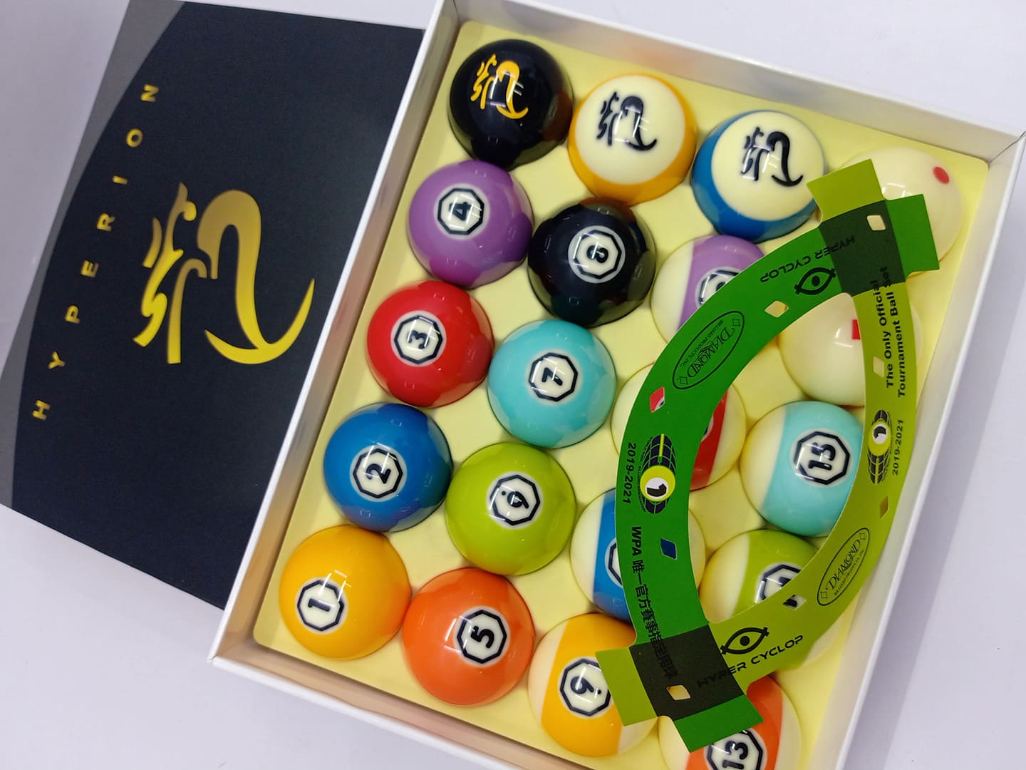 Cyclop Hyperion là loại bóng bi a đặc biệt. Bi cái màu trắng tinh khiết có chấm đỏ 2 bên tâm quả bóng và trên 1 vài bi có in biểu tượng rồng cách tân đặc sắc.