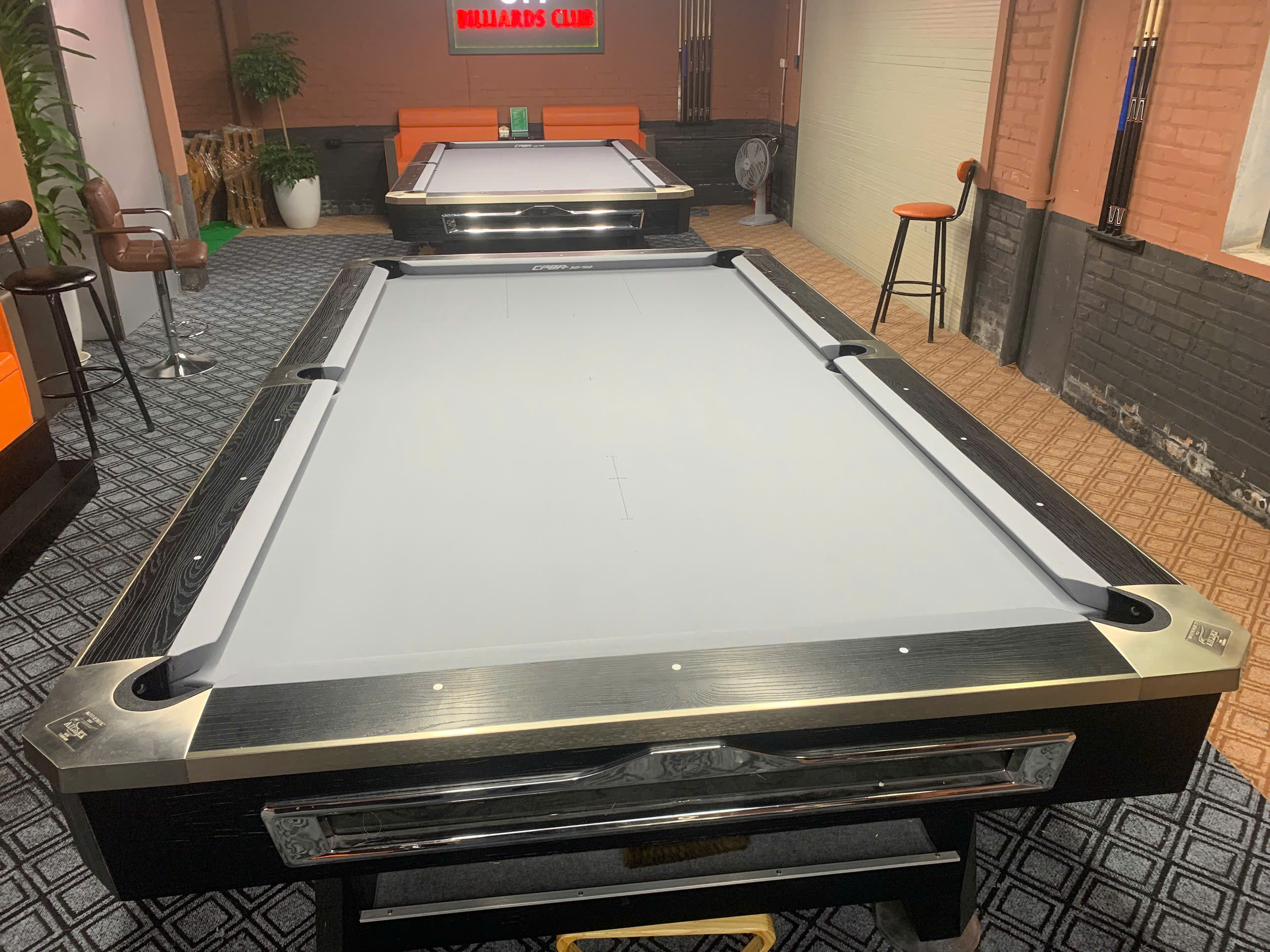 Khu trưng bày bàn bida và gậy bida tại chợ bi-a toàn quốc.