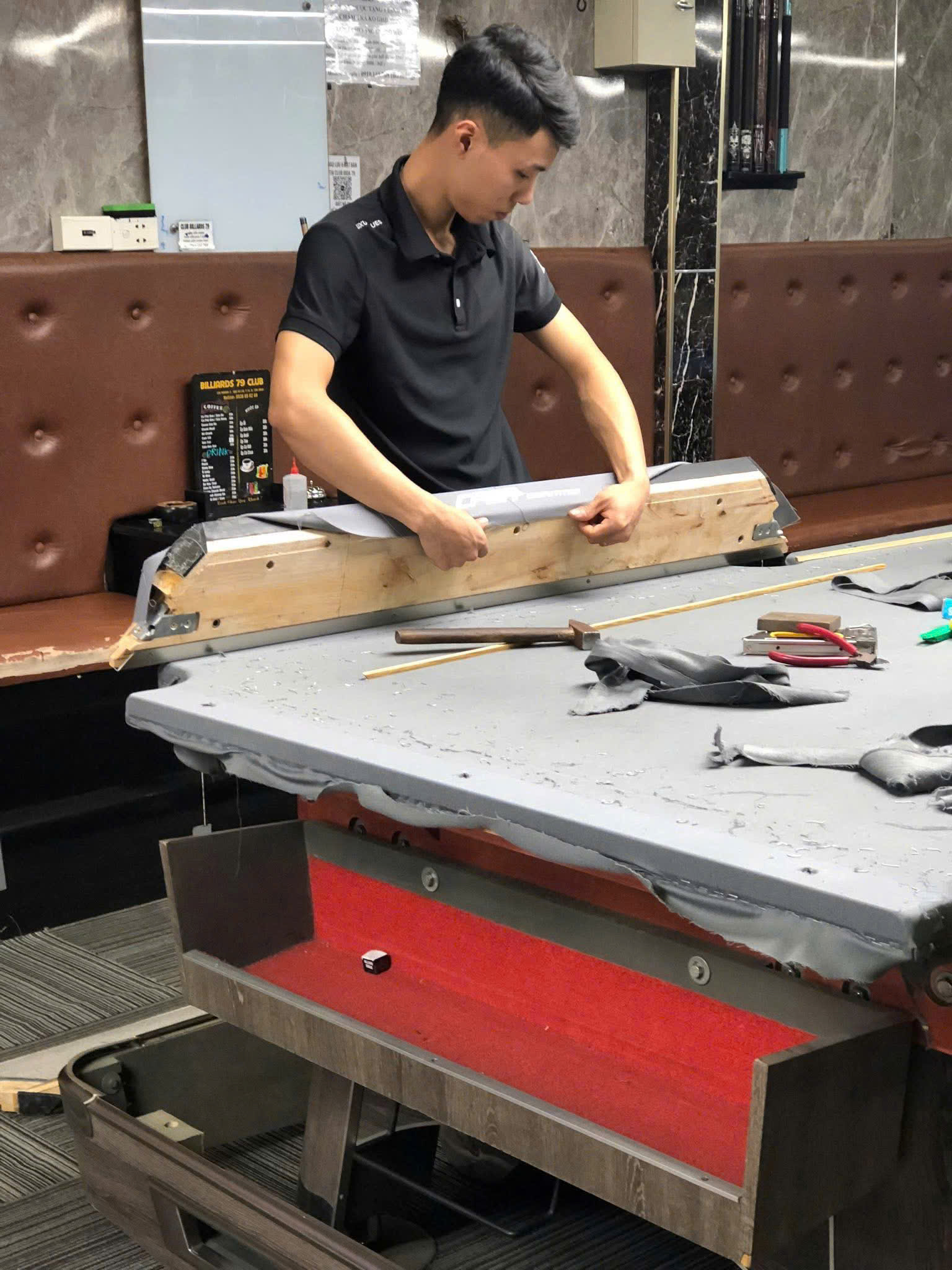 © 2025 Billiards Sao Việt Quy trình thay nỉ bi-a cao cấp tận nhà tại Việt Nam Nhóm kỹ thuật hội thay nỉ bi-a đang thay nỉ mới cho bàn bida Hội Nhóm Thay Nỉ Bi-a Miền Bắc – Đội Ngũ Thợ Số 1 Cho CLB & Gia Đình Nếu anh em đang tìm hội nhóm thay nỉ bi-a Miền Bắc uy tín, làm nhanh – làm chuẩn – giá đúng, thì Billiards Sao Việt chính là lựa chọn top đầu. Đội thợ của chúng tôi chuyên xử lý từ A–Z các dòng bàn bi-a phổ biến: bàn lỗ, bàn carom, Pool, Snooker, bàn đóng theo mẫu hoặc bàn sản xuất trong nước. Chỉ cần alo – đội thợ sẽ di chuyển ngay trong 30 phút, hỗ trợ tất cả tỉnh thành phía Bắc. Lý do nhiều CLB tin chọn hội nhóm thay nỉ bi-a Miền Bắc của Sao Việt ✔ Thay nỉ tốc chiến trong ngày – Tối ưu cho quán đông khách – Nhận thay nỉ ngoài giờ – ca tối – ca đêm ✔ Kho nỉ sẵn 15+ màu chuẩn Quốc tế – Nỉ Simonis, Master, CM1 – Chống xù – chống cháy cơ – độ lỳ cao – độ bền 12–24 tháng ✔ Kỹ thuật căng nỉ chuẩn giải – Phẳng – mượt – không nhăn – Độ trượt chuẩn theo tiêu chuẩn thi đấu – Bi chạy nhẹ – không hú – không kẹt ✔ Giá công khai – không phát sinh Anh chỉ thanh toán đúng hạng mục báo trước. Hỗ trợ xuất hóa đơn & bảo hành kỹ thuật. ⭐ Bảng giá thay nỉ bi-a Miền Bắc (tham khảo) Nỉ thường: 1.650.000 – 1,850.000đ/mặt Nỉ cao cấp: 2.100.000 – 2.850.000đ/mặt Nỉ Simonis chính hãng: 3.5–5.5 triệu/mặt Combo nỉ + vệ sinh + căn chỉnh mặt bàn: Giá ưu đãi cho CLB & đại lý (Dịch vụ có chiết khấu cho các CLB thay từ 3 bàn trở lên) ⭐ Dịch vụ kèm theo cho CLB – Căn chỉnh mặt bàn – cân lèo – cân chuẩn cao su – Thay băng bàn lỗ – thay băng cơ – Vệ sinh bàn – đánh bóng đá – siết ốc – Khắc phục bàn bi-a bị hú, bi chạy sai hướng – Tư vấn set up bàn mới cho quán mở thêm ⭐ Khu vực phục vụ Miền Bắc Hà Nội – Hà Đông – Bắc Ninh – Hưng Yên – Hải Dương – Hải Phòng – Thái Bình – Nam Định – Phú Thọ – Vĩnh Phúc – Yên Bái – Tuyên Quang – Lào Cai – Thanh Hóa – Ninh Bình – Hòa Bình – Bắc Giang – Quảng Ninh. Chỉ cần gọi – đội thợ sẽ đến tận nơi.
