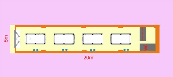 Bạn có thể thiết kế bố trí vị trí hay sắp xếp các bàn sen kẽ với nhau. Hãy cố gắng tận dụng các loại bàn bida cũ vì chúng tiết kiệm chi phí.