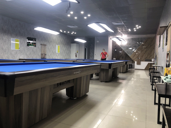 - Diện tích 400m2, bao gồm: 2 bàn 3băng, 8 bàn bida phăng Aillex nhập, 4 bàn lỗ Aillex nhập, tổng cộng 14 bàn, quán trang bị đầy đủ các thiết bị, như: camera, tủ đụng cơ, máy lạnh, dàn âm thanh, đèn trang trí, ghế sofa, quầy tính tiền, tủ lạnh, tủ mát, tivi, máy lạnh .....đầy đủ.