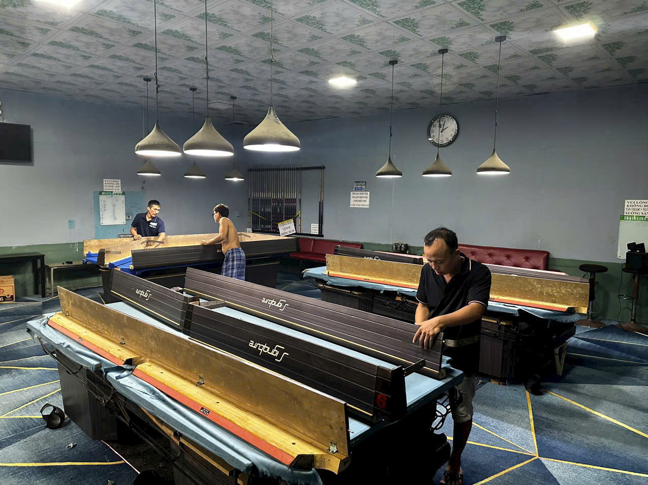 http://Thay Nỉ Bi A Miền Bắc – Dịch Vụ Uy Tín & Giá Tốt tại Bida Sao Việt Bida Sao Việt là đơn vị hàng đầu chuyên thay nỉ bàn bi a tại Hà Nội và toàn miền Bắc. Với đội ngũ kỹ thuật hơn 10 năm kinh nghiệm, chúng tôi nhận thay nỉ tận nơi cho mọi loại bàn: bàn lỗ, bàn carom, bàn pool, bàn thi đấu hoặc bàn giải trí. Toàn bộ nỉ bida được sử dụng là hàng chính hãng Simonis, Andy, Gorina… giúp mặt bàn phẳng, bi chạy mượt và bền lâu. Quy trình thay nỉ nhanh gọn, có bảo hành, cam kết bàn đẹp như mới. Bida Sao Việt phục vụ tận nơi các tỉnh: Hà Nội, Bắc Ninh, Hải Dương, Hải Phòng, Nam Định, Hưng Yên, Thái Nguyên và khu vực lân cận. Giá thay nỉ bàn bi a chỉ từ 800.000đ – 1.800.000đ tùy loại bàn và loại nỉ. Khách hàng đại lý hoặc thay nhiều bàn sẽ được giảm giá đặc biệt. Liên hệ ngay Hotline 0963 955 283 – 0936 365 568 để được báo giá và đặt lịch thay nỉ tận nơi.bidasaoviet